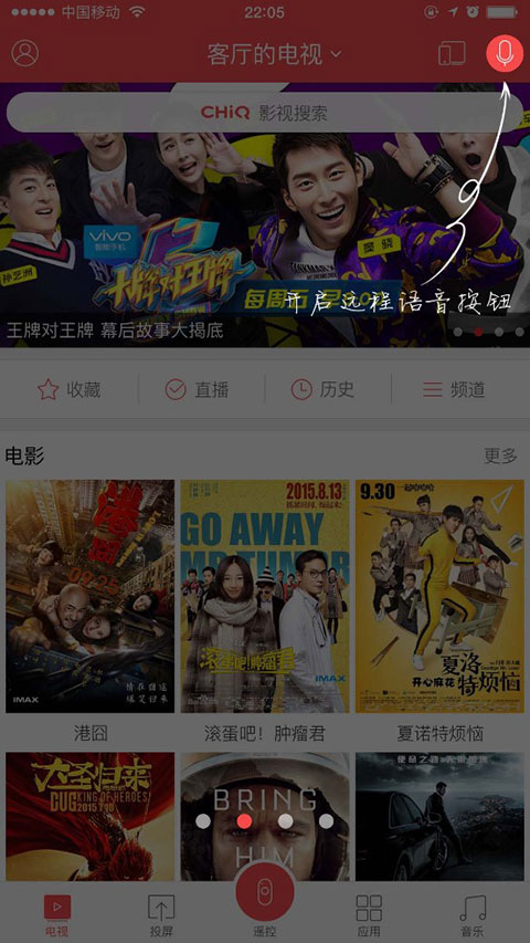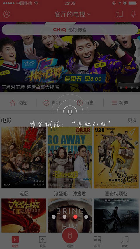 只需一个手机,即可控制局域网内的CHiQ电视,还可以语音控制。