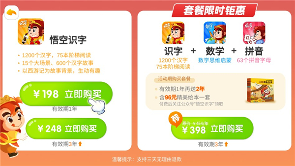 悟空识字是由启点教育出品的一款幼儿教育学习软件。软件以西游记为故事背景,开启了15大场景、120多个识字游戏、1200个识字动画,包括了1200个汉字和5000个词语,识字量覆盖常用书面语的90%,可以帮助孩子从字形,字音,组词三方面入手,全面掌握各种汉字。软件还为用户提供了60册精心设计的幼儿启蒙读物,可以帮助孩子一边阅读一边识字,还可以培养孩子的阅读思维,能够激发孩子的学习兴趣。不仅如此,软件提供的各种学习资料以及各种资源非常适合低龄阶段的孩子进行学习,可以培养孩子的学习兴趣,掌握各种汉字的读法、写法以及用法,同时还为孩子智能定制学习方案,全面保障孩子的学习。