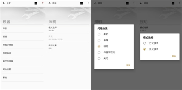 APP端可以直观的对音箱和灯光进行设置,在灯光的设置界面可以看到灯光的多种效果调节。