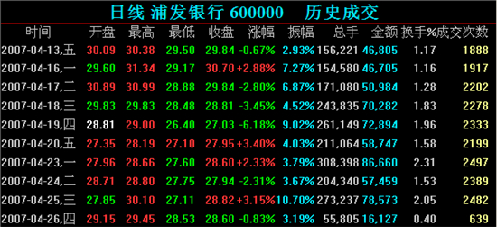 日线报表列出了某个商品每个交易日的统计数据,包含当日开盘价、最高价、最低价、收盘价、涨幅、振幅、总成交量、成交金额、换手率、成交次数。