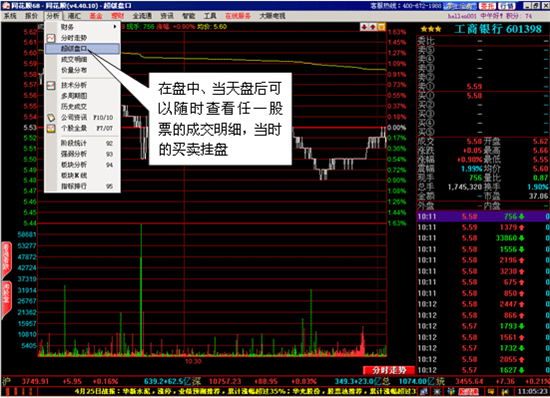 在这里您可以查看任一股票的详细成交状况,我们会将每一笔成交发生时的买卖挂盘变化重现在您的面前。