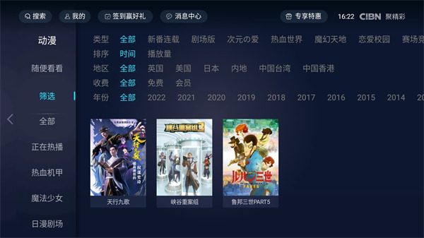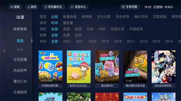 7、CIBN聚精彩桌面即内容,进入桌面可块选择内容、分类,你最感兴趣的内容唾手可得。