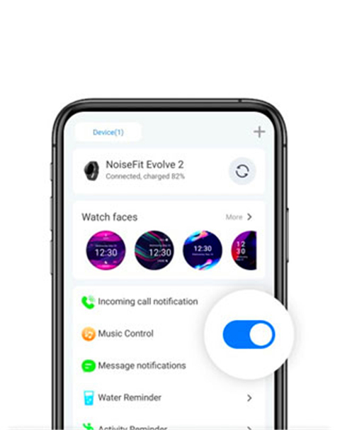 2、请确保TouchGUI App在手机后台正常运行,音乐控制开关已开启,且手机正在播放音乐(打开TouchGUI App > “设备” > 打开“音乐控制”开关)。