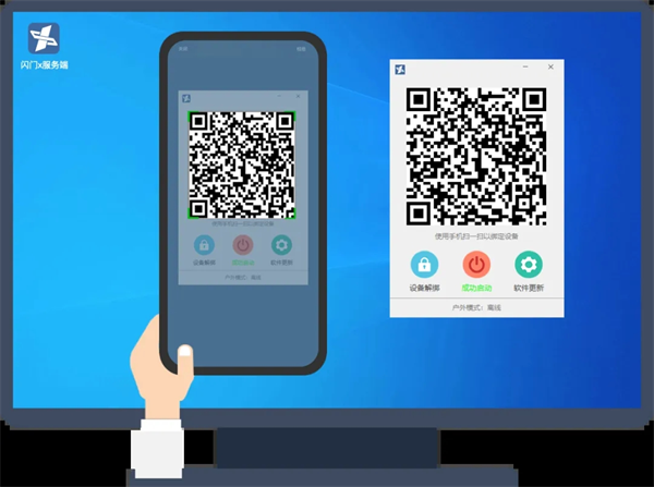 3、在手机(主设备)上打开闪门APP,使用「扫一扫」,绑定电脑主机