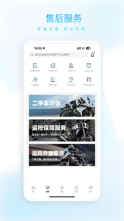 盗抢/保险/无忧服务:提供保险业务及无忧服务保障;