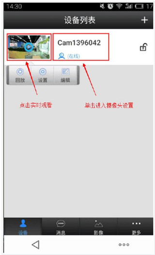 点击小画面进入实时监控,点击在线框框进入摄像头设置