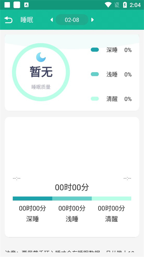 注意:要佩戴手环入睡才会有睡眠数据,且从晚上10点开始进入监测模式,入睡4小时后,再进入APP才能看到。