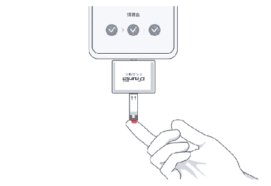 根据app提示,插入血糖仪和试条。注意:试条电极面朝向血糖仪正面不要抓握血糖仪的正面。