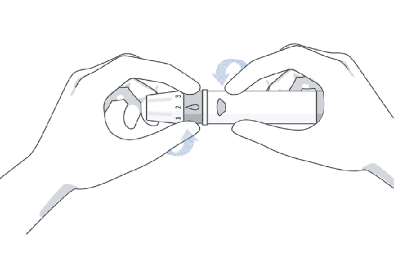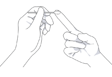 打开采血笔,将采血针插入笔芯杆内拧断采血针护帽,然后把笔帽盖好。注意:旋转护帽来拧断