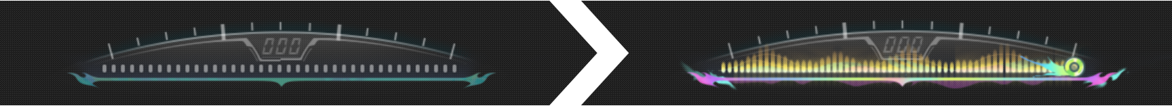 当回路条为以下状态时为光学取样阶段,这个阶段除了大招以及大招后的强普不能回复,其他攻击都可以回复溢彩,满了之后普攻图标变亮。