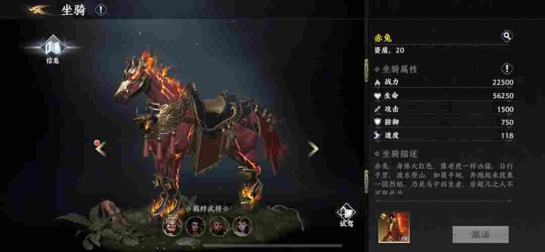 4、兑换商城:活动开启期间可使用神驹徽章兑换商城内的道具,限定兑换的次数仅对本次活动周期内生效;本次活动最值得兑换的那肯定是80碎片激活的绝影与80碎片激活的赤兔,都是20资质得存在,闯荡天下必备。