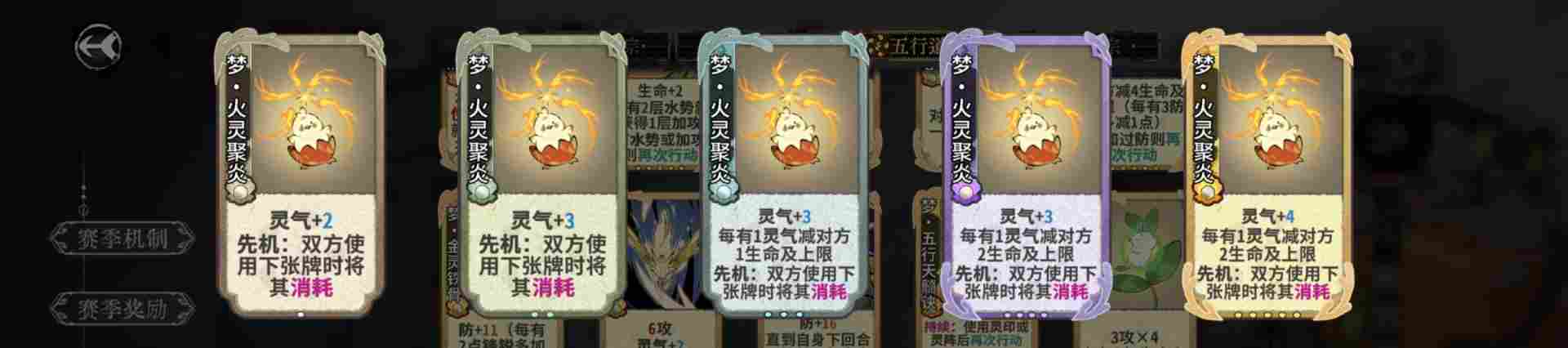 练气:有特殊效果的火版本一级水印,烧到对面的七星阁后招卡或者梦枯木就厉害,但是不好用,npc。
